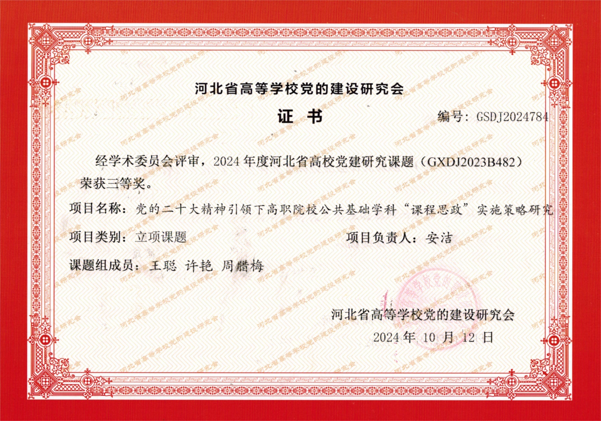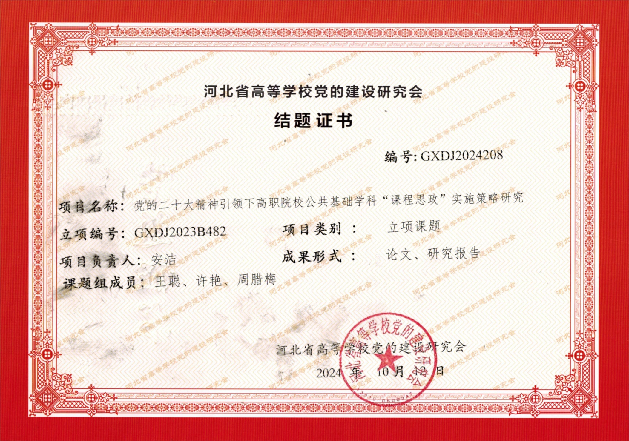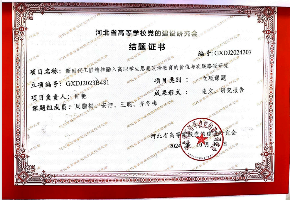 2023年河北省高等学校党的建设研究课题顺利结项并获奖