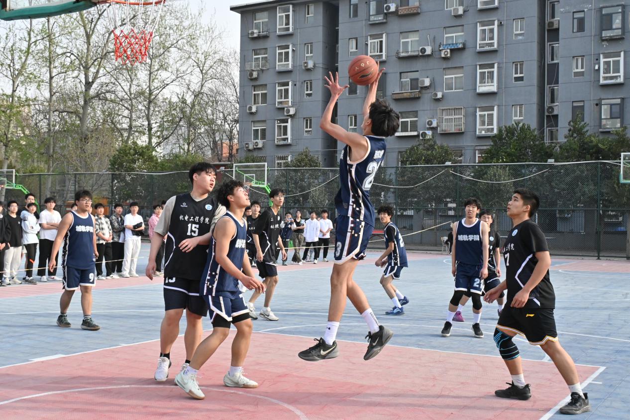 随着篮球裁判员的哨声,各二级学院代表队展开了激烈角逐。赛场上,球员们运球突破、精准投篮、默契配合,每一次进攻与防守都扣人心弦。场边啦啦队的呐喊助威声此起彼伏,将比赛氛围推向高潮。