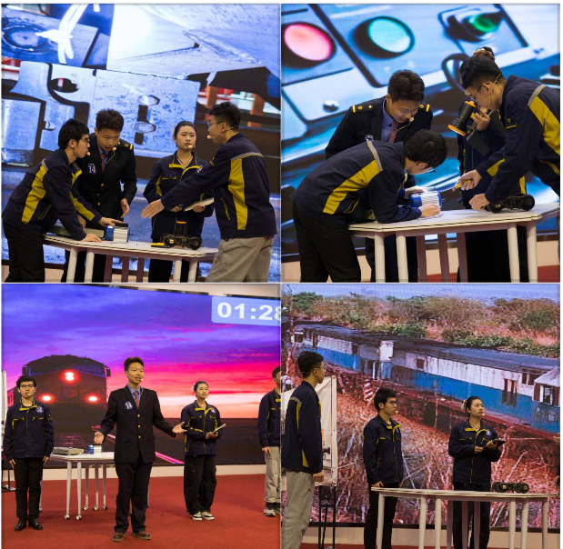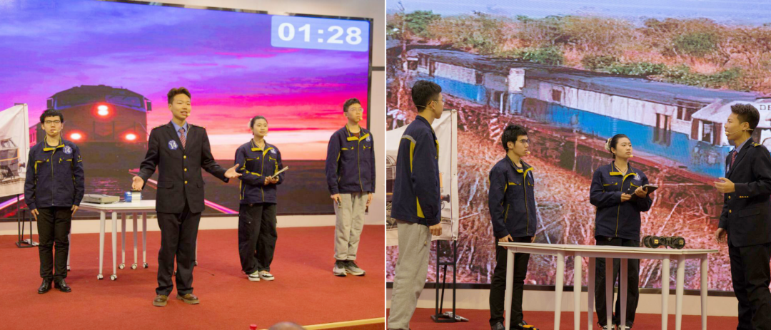 参赛团队由机车高2407班王津、运输高2506班刘奕成、城运高2501班王一鸣、城运高2502班张家栋四位同学组成,在刘秀苗、王存国两位老师的悉心指导下,他们在赛场上展现出扎实的英语功底与默契的团队配合。