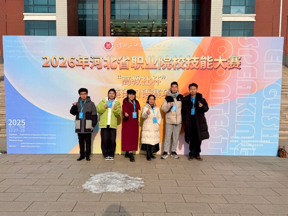 近日,由河北省教育厅主办的2026年河北省职业院校技能大赛英语口语赛项圆满落幕。我校代表队在全省56所高职院校中脱颖而出,以总成绩第六名荣获团体二等奖,全面展现了职业院校学生出色的英语应用能力与职业素养。