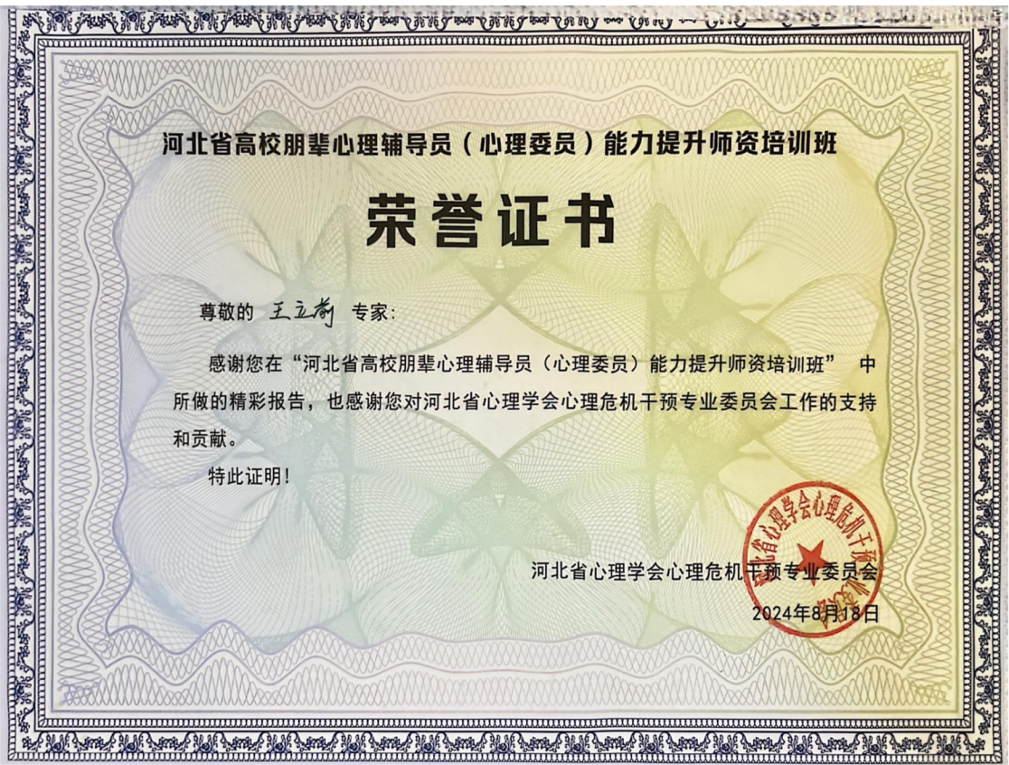 2024年受邀在河北省高校朋辈心理辅导员(心理委员)能力提升师资培训班作精彩报告
