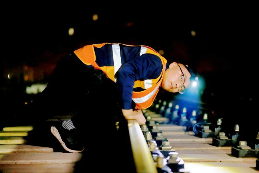凌晨的京雄城际铁路线上,探照灯划破夜幕,一个身影俯身在冰冷的钢轨上。道尺与轨面紧密贴合,他眉头微蹙:“轨距偏差1毫米,调左股!”声音不大,却透着不容置疑的坚定。他就是我校2016届毕业生俞金星,现任丰台工务段雄安高铁线桥车间大兴综合维修工区工长,一位用毫米级较真守护高铁安全的“钢轨卫士”。